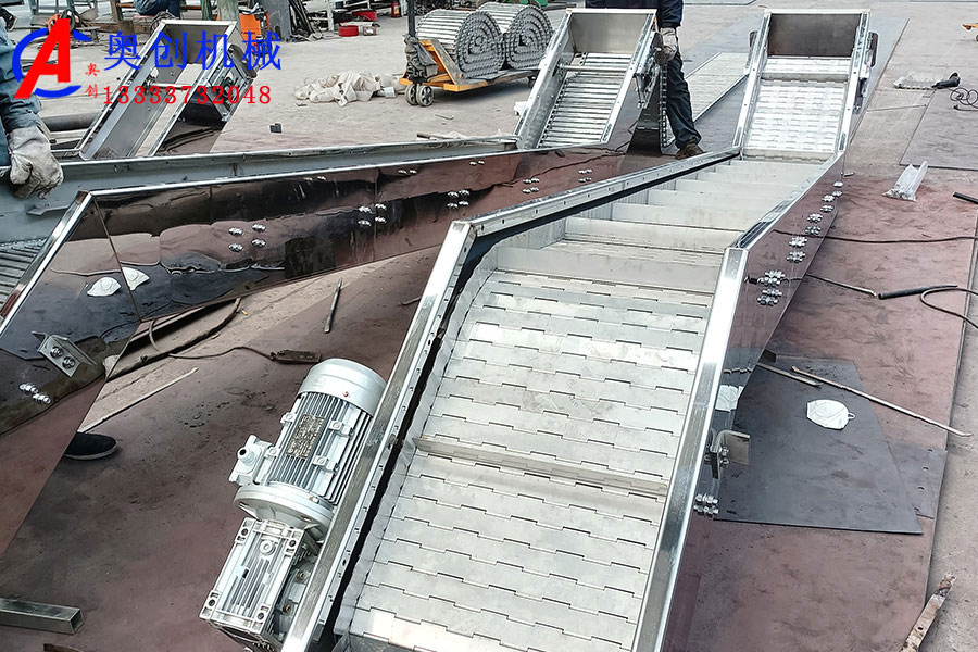 砂石链板输送机的简介 砂石链板式输送机简介链板输送机,也称为链板输送机,链板线。它是一种以往复链为牵引动力,以金属板为输送...